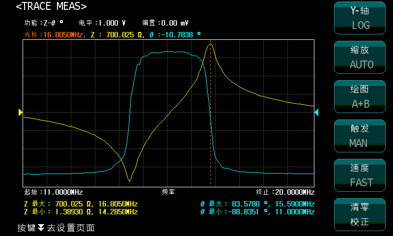 ZX8590測量壓電陶瓷晶片反諧振頻率:16.8050MHz如下圖: